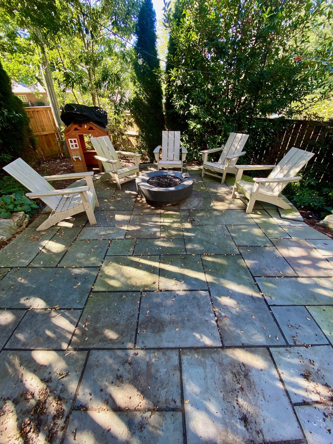 StraightLine Power Washing recently completed a stone patio cleaning project at a home in Alexandria, Virginia. The patio had accumulated dirt, algae, and natural weather buildup that made the stone appear dark and aged. Our goal was to thoroughly clean the surface and improve the overall appearance of the outdoor space.